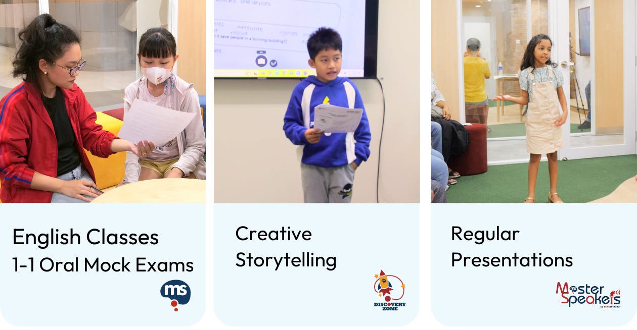 This scene feels familiar to me because I also attend a public speaking course at Master Speakers. At first, I was hesitant and overly self-conscious. However, with the help of my coach, I broke out of my shell. Like the children in the picture, I now delight in telling stories and sharing my opinions in front of my classmates, listening to their inspiring speeches, and witnessing their progress as speakers.