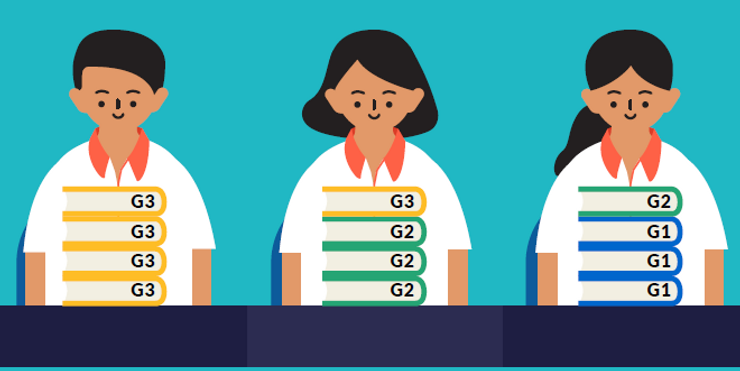 A student in the SBB system in Secondary 1 will take either G1, G2 and/or G3 subjects based on his/her scores for the various subjects in PSLE. The PSLE still serves as a useful gauge of the subject levels that each student is most suited for at the beginning of Secondary 1. Thereafter, they can take subjects at a more demanding level, depending on their abilities as they progress to the other secondary levels.
