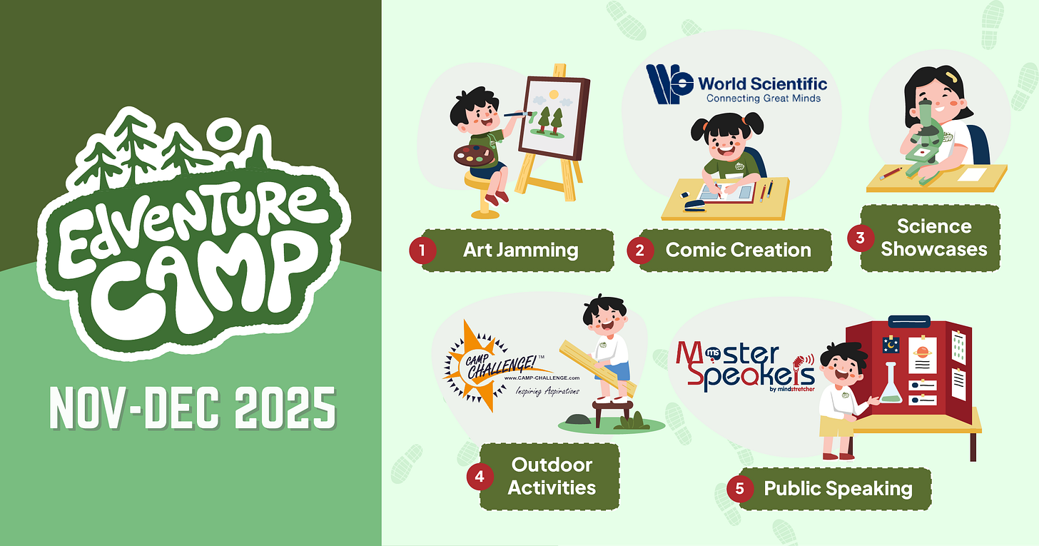 With the year-end holidays approaching, check out Edventure Camp 2025 - 5 days of fun, creativity and confidence-building experiences for P1–P6 students.