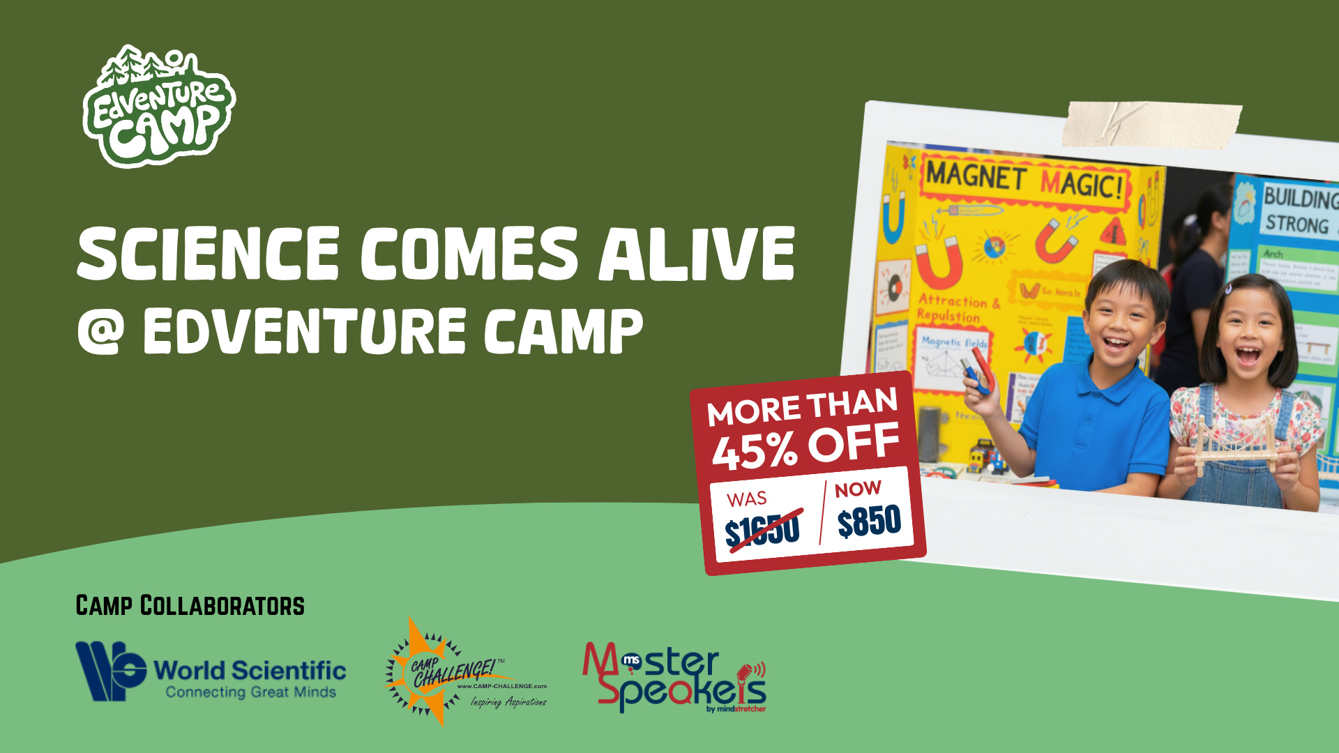 Upper Primary (10-12 years old): They’ll put structures and load-bearing design to the test by building bridges and uncover the science behind magnets through a fun “magic trick” challenge.