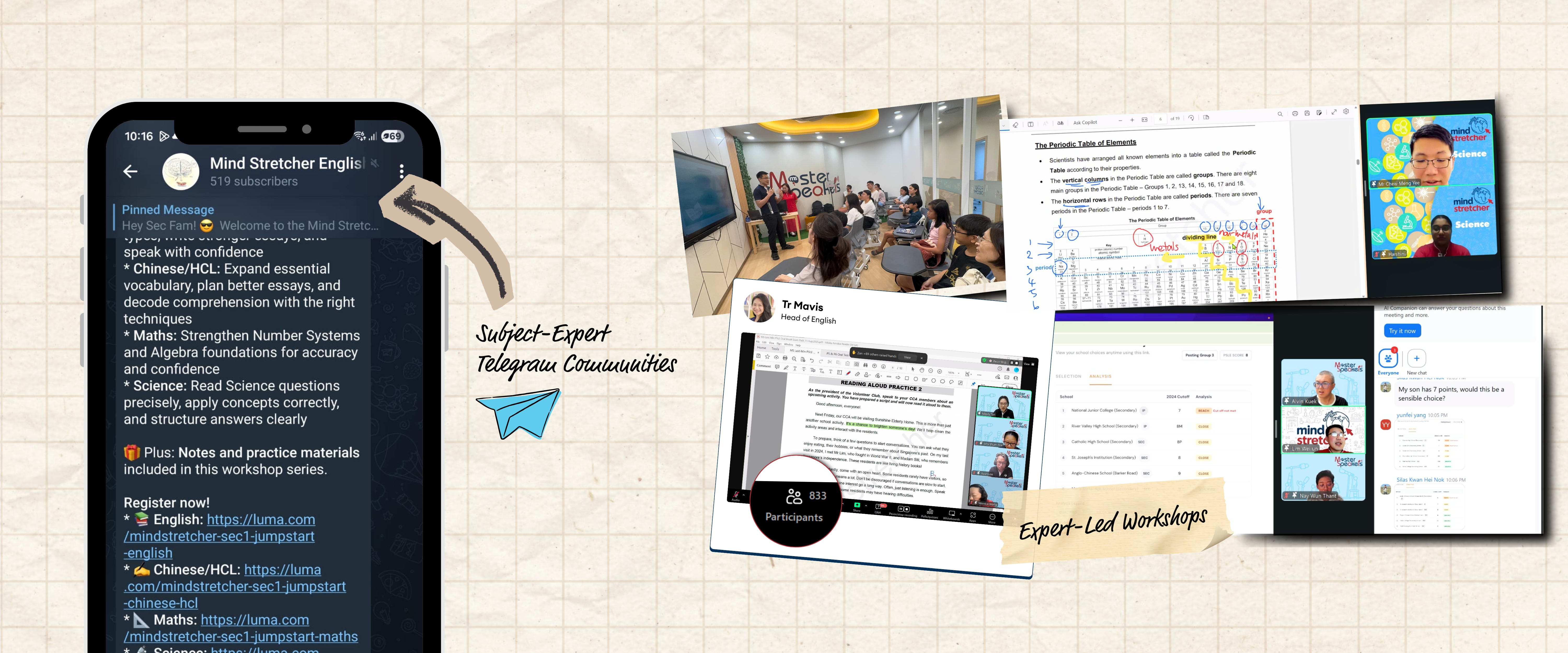 Subject-Expert Telegram Communities: Our teachers share revision materials and early insights into the 2026 syllabus, along with practice questions to help students ease into the new school year. Parents and students also receive updates on upcoming free Super Sessions and workshops. Join our Telegram groups across Primary & Secondary levels here.